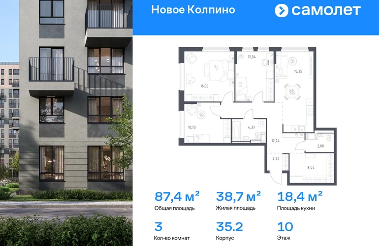 Предлагается 3-комнатная квартира комфорт-класса 87,36 кв.м в корпусе 35.2 на 10 этаже, в ЖК «Новое Колпино» Квартира без отделки. Доступность опции «отделка» и возможность комплектации мебелью и декором уточняйте у застройщика. Приобрести квартиру возможно по специальным акциям от застройщика, с текущими условиями акций можно ознакомиться в блоке «Акций». Цена динамическая и может отличаться, уточняйте актуальность у застройщика. Квартал «Новое Колпино» — современный квартал в тихом и зеленом районе Санкт-Петербурга. Здесь можно подолгу любоваться пышными кронами деревьев, подставляя лицо теплым лучам солнца. А еще в любой момент можно сесть в машину и уже через час оказаться в сердце Северной столицы. Будет легко планировать поездки: до центра Петербурга, или площади Восстания, — 25 минут на поезде. С территории квартала удобно выезжать на крупные магистрали: путь до Южного шоссе займет 15 минут на авто, а до Петрозаводского шоссе — всего 6 минут. В 20 минутах на авто находится метро «Рыбацкое», а в 7 минутах — ж/д станция Колпино. Проводите выходные на природе в Колпинском парке, который находится недалеко от квартала, на берегу реки Ижоры. Летом здесь можно вместе с детьми веселиться на аттракционах, кататься на лодке, играть в бадминтон или волейбол. А еще можно захватить орехов и покормить белок. Всего 7 минут на авто или автобусе — и вы в центре города Колпино. Взрослых впечатлит русская архитектура старинных церквей, а детям понравится забавный памятник героям мультфильма «Трое из Простоквашино». В «Новом Колпино» будут работать 4 детских сада, 3 из них уже готовы встречать малышей. Ребята постарше могут ходить на занятия в школу с собственным бассейном, в проекте уже работает новая современная школа с бассейном Корпуса высотой 11 этажей с французскими и панорамными балконами отделаны штукатуркой и облицовочным кирпичом. Вдохновение для палитры нам подарили оттенки рассветного неба: терракотовый, персиковый, песочный. Во дворе найдется интересное занятие для всех жителей квартала. Взрослые смогут устраивать тренировки на свежем воздухе в спортивных зонах, дети будут целый день веселиться на игровых площадках. А еще мы позаботились о вашей безопасности и закрыли дворы от машин. Возвращайтесь домой с чемоданом из путешествия или коляской из парка. На пути в подъезд вы не встретите ступенек. Оставить транспорт можно будет в специальном помещении на первом этаже. По желанию вы сможете получить ключи от квартиры с готовой отделкой. Мы положим ламинат, поклеим обои, установим мебель и сантехнику. Доступен вариант с готовой кухней — бежевые тона отделки станут фоном для интерьера мечты. Чтобы сразу отпраздновать новоселье, закажите у нас декор и мебельные сеты. А если хочется воплотить собственные идеи в интерьере, присмотритесь к опции — без отделки.#yan19-2r1803106#О застройщике