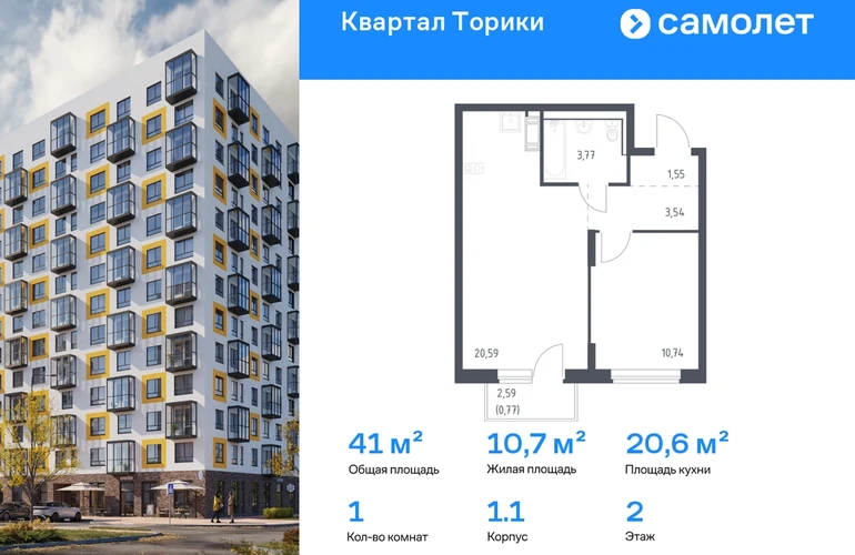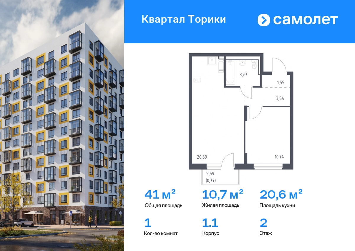 Предлагается 1-комнатная квартира комфорт-класса 40,96 кв.м в корпусе 1.1 на 2 этаже, в ЖК «Квартал Торики» Квартира с чистовой отделкой. Доступность дополнительных опций уточняйте у застройщика. Приобрести квартиру возможно по специальным акциям от застройщика, с текущими условиями акций можно ознакомиться в блоке «Акций». Цена динамическая и может отличаться, уточняйте актуальность у застройщика. Жилой комплекс «Квартал Торики» — комфортное место для семьи. Из окон открывается голубое небо, а все необходимое находится рядом. До центра Санкт-Петербурга — 40 минут на авто, до метро «Проспект Ветеранов» — 20 минут, рядом три автобусные остановки. Всего 15–20 минут пешком до Гореловского озера для прогулок и пикников. Полежаевский и Южно-Приморский парки подходят для выгула собак, а набережная канала реки Дудергофки — для велосипедных прогулок. В квартале откроются школа на 525 мест и 2 детских сада на 160 и 180 мест. Утро можно начать в кофейне на первом этаже, а вечером — закупить продуктов. Современные монолитные дома высотой 11–13 этажей выполнены в спокойной цветовой гамме с яркими акцентами. Дворы с уютными «лесными гостиными» закрыты для посторонних — дети на игровых площадках будут в безопасности. На территории есть 3 многоуровневых паркинга. Входы в подъезды без ступенек, предусмотрены кладовые и помещения для колясок и велосипедов. Квартиры сдаются без отделки.#yan19-2r1805761#О застройщике