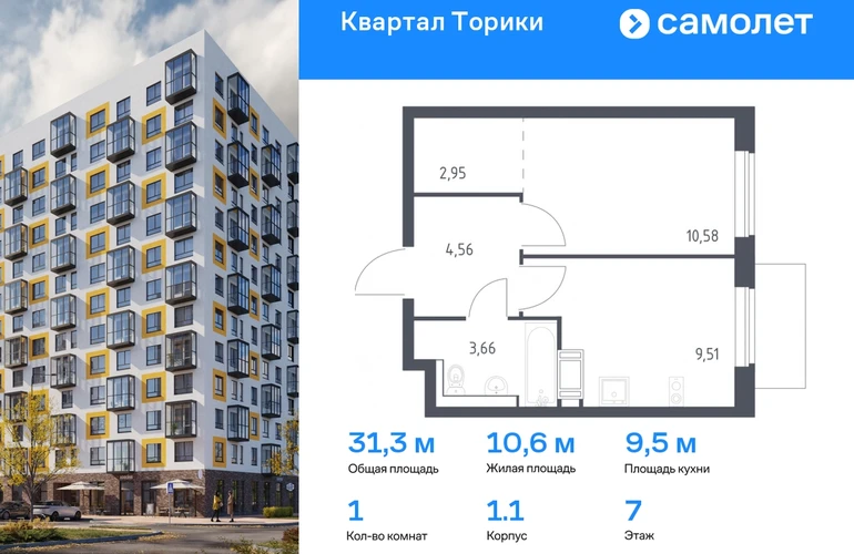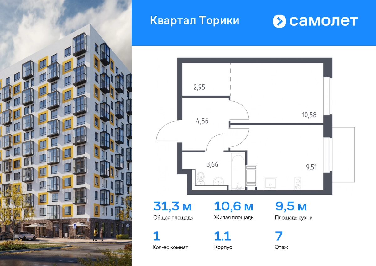 Предлагается 1-комнатная квартира комфорт-класса 31,26 кв.м в корпусе 1.1 на 7 этаже, в ЖК «Квартал Торики» Квартира с чистовой отделкой. Доступность дополнительных опций уточняйте у застройщика. Приобрести квартиру возможно по специальным акциям от застройщика, с текущими условиями акций можно ознакомиться в блоке «Акций». Цена динамическая и может отличаться, уточняйте актуальность у застройщика. Жилой комплекс «Квартал Торики» — комфортное место для семьи. Из окон открывается голубое небо, а все необходимое находится рядом. До центра Санкт-Петербурга — 40 минут на авто, до метро «Проспект Ветеранов» — 20 минут, рядом три автобусные остановки. Всего 15–20 минут пешком до Гореловского озера для прогулок и пикников. Полежаевский и Южно-Приморский парки подходят для выгула собак, а набережная канала реки Дудергофки — для велосипедных прогулок. В квартале откроются школа на 525 мест и 2 детских сада на 160 и 180 мест. Утро можно начать в кофейне на первом этаже, а вечером — закупить продуктов. Современные монолитные дома высотой 11–13 этажей выполнены в спокойной цветовой гамме с яркими акцентами. Дворы с уютными «лесными гостиными» закрыты для посторонних — дети на игровых площадках будут в безопасности. На территории есть 3 многоуровневых паркинга. Входы в подъезды без ступенек, предусмотрены кладовые и помещения для колясок и велосипедов. Квартиры сдаются без отделки.#yan19-2r1810591#О застройщике