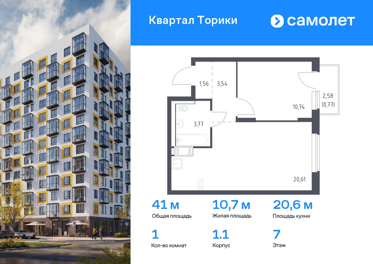 Предлагается 1-комнатная квартира комфорт-класса 40,99 кв.м в корпусе 1.1 на 7 этаже, в ЖК «Квартал Торики» Квартира с чистовой отделкой. Доступность дополнительных опций уточняйте у застройщика. Приобрести квартиру возможно по специальным акциям от застройщика, с текущими условиями акций можно ознакомиться в блоке «Акций». Цена динамическая и может отличаться, уточняйте актуальность у застройщика. Жилой комплекс «Квартал Торики» — комфортное место для семьи. Из окон открывается голубое небо, а все необходимое находится рядом. До центра Санкт-Петербурга — 40 минут на авто, до метро «Проспект Ветеранов» — 20 минут, рядом три автобусные остановки. Всего 15–20 минут пешком до Гореловского озера для прогулок и пикников. Полежаевский и Южно-Приморский парки подходят для выгула собак, а набережная канала реки Дудергофки — для велосипедных прогулок. В квартале откроются школа на 525 мест и 2 детских сада на 160 и 180 мест. Утро можно начать в кофейне на первом этаже, а вечером — закупить продуктов. Современные монолитные дома высотой 11–13 этажей выполнены в спокойной цветовой гамме с яркими акцентами. Дворы с уютными «лесными гостиными» закрыты для посторонних — дети на игровых площадках будут в безопасности. На территории есть 3 многоуровневых паркинга. Входы в подъезды без ступенек, предусмотрены кладовые и помещения для колясок и велосипедов. Квартиры сдаются без отделки.#yan19-2r1810592#О застройщике