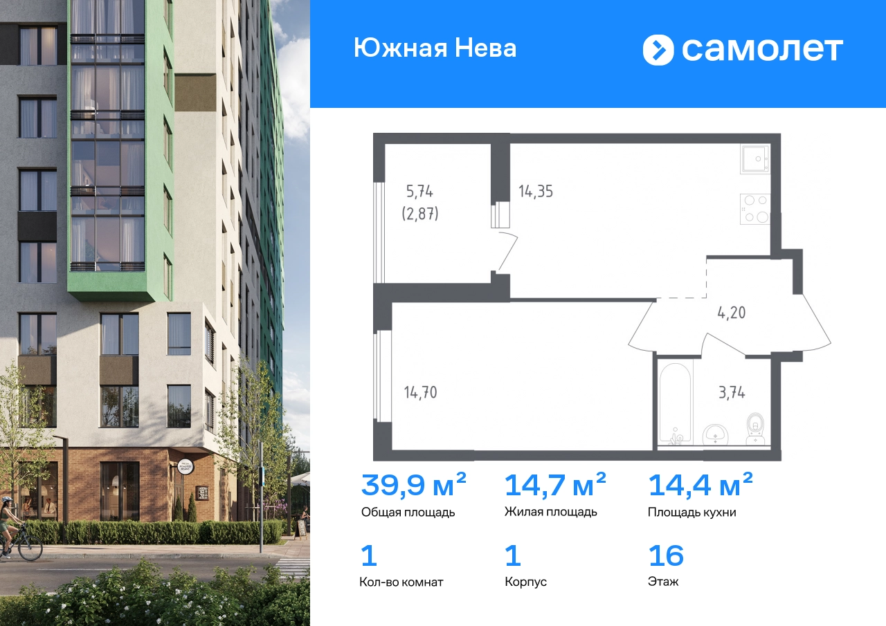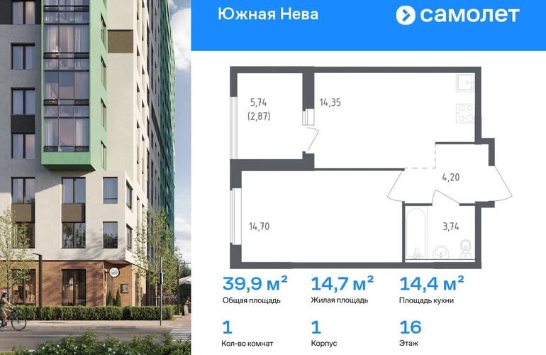 Предлагается 1-комнатная квартира комфорт-класса 39,86 кв.м в корпусе 1 на 16 этаже, в ЖК «Южная Нева» Квартира с предчистовой отделкой. Доступность дополнительных опций уточняйте у застройщика. Приобрести квартиру возможно по специальным акциям от застройщика, с текущими условиями акций можно ознакомиться в блоке «Акций». Цена динамическая и может отличаться, уточняйте актуальность у застройщика. Спокойное течение Невы, монументальные арки Володарского моста и простор лесопарка создают атмосферу жилого комплекса «Южная Нева». До КАДа — всего 5 минут, до центра города — 30 минут на машине, а станция метро «Пролетарская» в 10 минутах. Для любителей природы рядом Невский лесопарк и «МЕГА Парк», где можно бегать, кататься на велосипеде или посетить веревочный парк. Для детей предусмотрены школа и 2 детских сада, а на первых этажах домов откроются салоны красоты, магазины и кафе. В шаговой доступности — фитнес-центр и торговые центры «МЕГА Дыбенко» и «Лондон Молл». Комплекс состоит из 11 монолитных домов высотой от 12 до 23 этажей с разноцветными фасадами и панорамными балконами. Двор украшают 7 мостов-навесов, а центральная аллея — собственная Нева. Здесь можно позагорать на лежаках или поиграть в шахматы, позаниматься на спортивной площадке или отвести ребенка в игровую зону на встречу с друзьями. В «Южной Неве» есть планировки с проходными кухнями-гостиными и гардеробными.#yan19-2r1600818#О застройщике