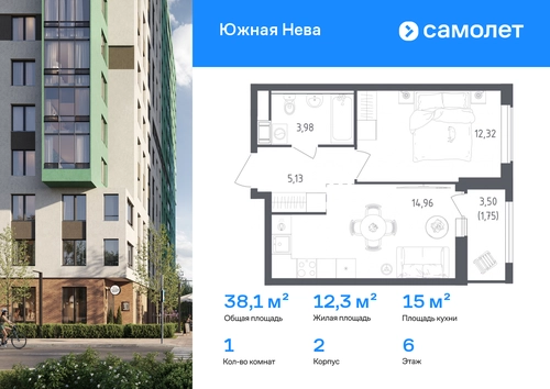 Предлагается 1-комнатная квартира комфорт-класса 38,14 кв.м в корпусе 2 на 6 этаже, в ЖК «Южная Нева» Квартира с чистовой отделкой. Доступность дополнительных опций уточняйте у застройщика. Приобрести квартиру возможно по специальным акциям от застройщика, с текущими условиями акций можно ознакомиться в блоке «Акций». Цена динамическая и может отличаться, уточняйте актуальность у застройщика. Спокойное течение Невы, монументальные арки Володарского моста и простор лесопарка создают атмосферу жилого комплекса «Южная Нева». До КАДа — всего 5 минут, до центра города — 30 минут на машине, а станция метро «Пролетарская» в 10 минутах. Для любителей природы рядом Невский лесопарк и «МЕГА Парк», где можно бегать, кататься на велосипеде или посетить веревочный парк. Для детей предусмотрены школа и 2 детских сада, а на первых этажах домов откроются салоны красоты, магазины и кафе. В шаговой доступности — фитнес-центр и торговые центры «МЕГА Дыбенко» и «Лондон Молл». Комплекс состоит из 11 монолитных домов высотой от 12 до 23 этажей с разноцветными фасадами и панорамными балконами. Двор украшают 7 мостов-навесов, а центральная аллея — собственная Нева. Здесь можно позагорать на лежаках или поиграть в шахматы, позаниматься на спортивной площадке или отвести ребенка в игровую зону на встречу с друзьями. В «Южной Неве» есть планировки с проходными кухнями-гостиными и гардеробными.#yan19-2r1719273#О застройщике
