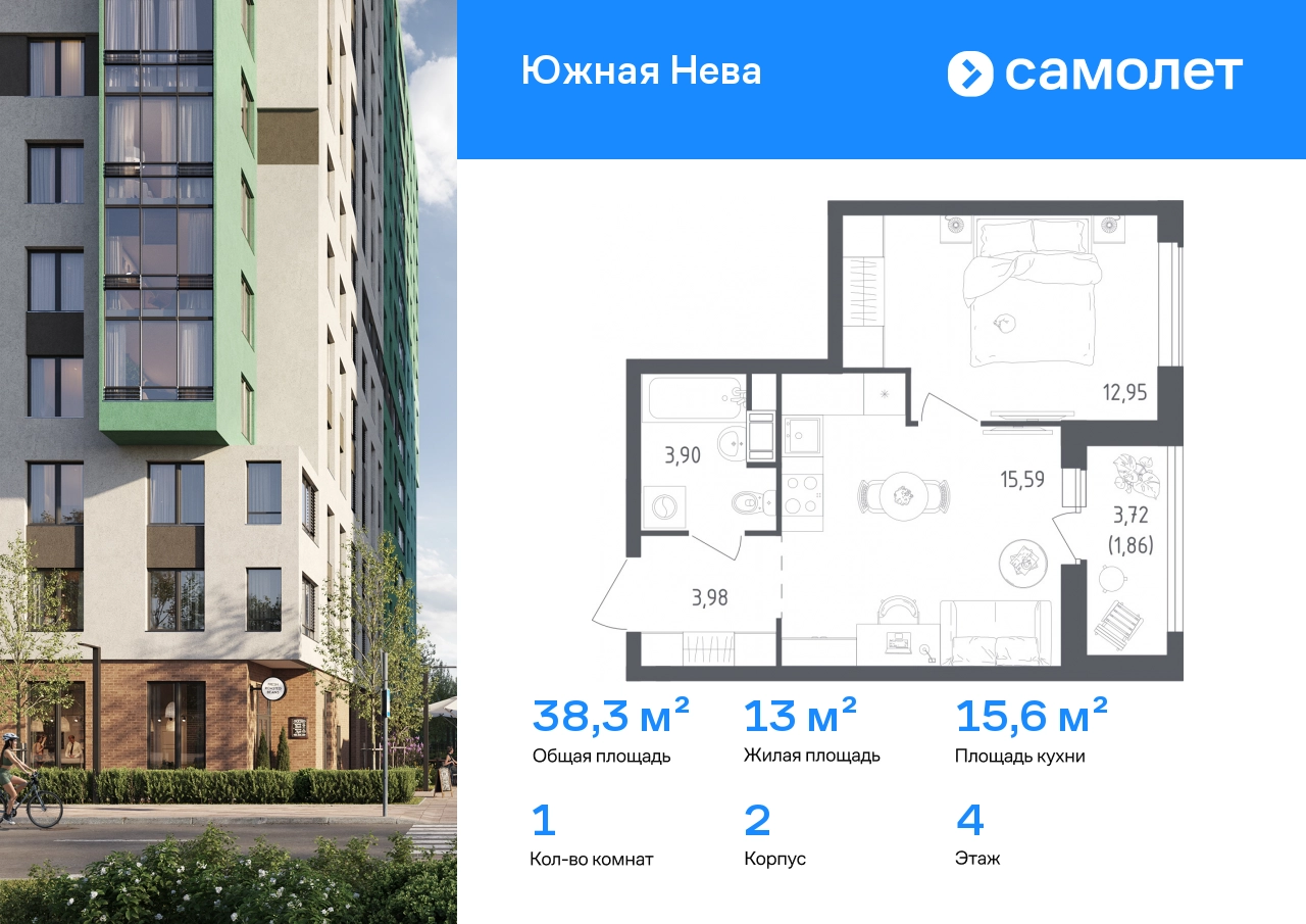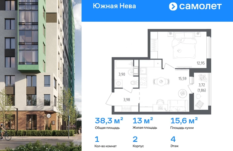 Предлагается 1-комнатная квартира комфорт-класса 38,28 кв.м в корпусе 2 на 4 этаже, в ЖК «Южная Нева» Квартира без отделки. Доступность опции «отделка» и возможность комплектации мебелью и декором уточняйте у застройщика. Приобрести квартиру возможно по специальным акциям от застройщика, с текущими условиями акций можно ознакомиться в блоке «Акций». Цена динамическая и может отличаться, уточняйте актуальность у застройщика. Спокойное течение Невы, монументальные арки Володарского моста и простор лесопарка создают атмосферу жилого комплекса «Южная Нева». До КАДа — всего 5 минут, до центра города — 30 минут на машине, а станция метро «Пролетарская» в 10 минутах. Для любителей природы рядом Невский лесопарк и «МЕГА Парк», где можно бегать, кататься на велосипеде или посетить веревочный парк. Для детей предусмотрены школа и 2 детских сада, а на первых этажах домов откроются салоны красоты, магазины и кафе. В шаговой доступности — фитнес-центр и торговые центры «МЕГА Дыбенко» и «Лондон Молл». Комплекс состоит из 11 монолитных домов высотой от 12 до 23 этажей с разноцветными фасадами и панорамными балконами. Двор украшают 7 мостов-навесов, а центральная аллея — собственная Нева. Здесь можно позагорать на лежаках или поиграть в шахматы, позаниматься на спортивной площадке или отвести ребенка в игровую зону на встречу с друзьями. В «Южной Неве» есть планировки с проходными кухнями-гостиными и гардеробными.#yan19-2r1743661#О застройщике