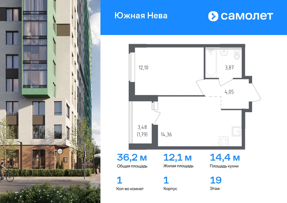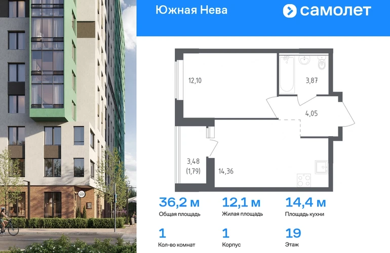 Предлагается 1-комнатная квартира комфорт-класса 36,17 кв.м в корпусе 1 на 19 этаже, в ЖК «Южная Нева» Квартира с предчистовой отделкой. Доступность дополнительных опций уточняйте у застройщика. Приобрести квартиру возможно по специальным акциям от застройщика, с текущими условиями акций можно ознакомиться в блоке «Акций». Цена динамическая и может отличаться, уточняйте актуальность у застройщика. Спокойное течение Невы, монументальные арки Володарского моста и простор лесопарка создают атмосферу жилого комплекса «Южная Нева». До КАДа — всего 5 минут, до центра города — 30 минут на машине, а станция метро «Пролетарская» в 10 минутах. Для любителей природы рядом Невский лесопарк и «МЕГА Парк», где можно бегать, кататься на велосипеде или посетить веревочный парк. Для детей предусмотрены школа и 2 детских сада, а на первых этажах домов откроются салоны красоты, магазины и кафе. В шаговой доступности — фитнес-центр и торговые центры «МЕГА Дыбенко» и «Лондон Молл». Комплекс состоит из 11 монолитных домов высотой от 12 до 23 этажей с разноцветными фасадами и панорамными балконами. Двор украшают 7 мостов-навесов, а центральная аллея — собственная Нева. Здесь можно позагорать на лежаках или поиграть в шахматы, позаниматься на спортивной площадке или отвести ребенка в игровую зону на встречу с друзьями. В «Южной Неве» есть планировки с проходными кухнями-гостиными и гардеробными.#yan19-2r1810356#О застройщике