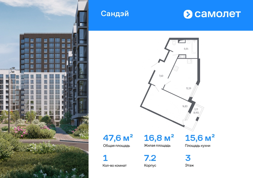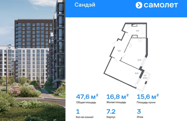 Предлагается 1-комнатная квартира комфорт-класса 47,61 кв.м в корпусе 7.2 на 3 этаже, в ЖК «Сандэй» Квартира с чистовой отделкой. Доступность дополнительных опций уточняйте у застройщика. Приобрести квартиру возможно по специальным акциям от застройщика, с текущими условиями акций можно ознакомиться в блоке “Акций”. Цена динамическая и может отличаться, уточняйте актуальность у застройщика. Сандэй – современный жилой комплекс на юго-западе Санкт-Петербурга у парка Сосновая поляна. Мы уже построили 7 средне-этажных домов, вся социальная и бытовая инфраструктура уже работает, рядом есть детские сады, школы, поликлиники и магазины – проживание будет очень комфортным. Прямо под окнами большой зеленый парк для прогулок - Сосновая Поляна В 7 минутах пешком расположена железнодорожная станция, от которой можно за 25 минут добраться до центральной части города – Балтийского вокзала. В 15 минутах езды самые известные пригороды Петербурга: Стрельна, Петергоф, а также берег Финского залива.#yan19-2r1802566#О застройщике