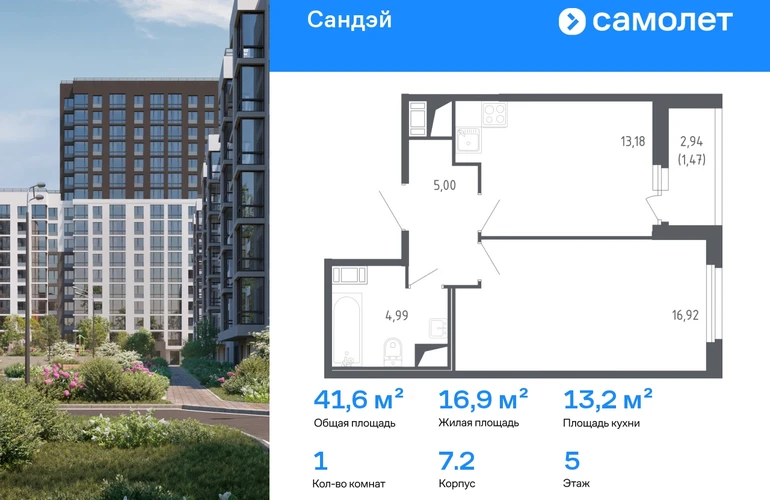 Предлагается 1-комнатная квартира комфорт-класса 41,56 кв.м в корпусе 7.2 на 5 этаже, в ЖК «Сандэй» Квартира с чистовой отделкой. Доступность дополнительных опций уточняйте у застройщика. Приобрести квартиру возможно по специальным акциям от застройщика, с текущими условиями акций можно ознакомиться в блоке «Акций». Цена динамическая и может отличаться, уточняйте актуальность у застройщика. Сандэй – современный жилой комплекс на юго-западе Санкт-Петербурга у парка Сосновая поляна. Мы уже построили 7 средне-этажных домов, вся социальная и бытовая инфраструктура уже работает, рядом есть детские сады, школы, поликлиники и магазины – проживание будет очень комфортным. Прямо под окнами большой зеленый парк для прогулок - Сосновая Поляна В 7 минутах пешком расположена железнодорожная станция, от которой можно за 25 минут добраться до центральной части города – Балтийского вокзала. В 15 минутах езды самые известные пригороды Петербурга: Стрельна, Петергоф, а также берег Финского залива.#yan19-2r1813073#О застройщике