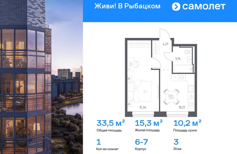 Предлагается 1-комнатная квартира комфорт-класса 32,2 кв.м в корпусе 6-7 на 20 этаже, в ЖК «Живи! В Рыбацком» Квартира без отделки. Доступность опции «отделка» и возможность комплектации мебелью и декором уточняйте у застройщика. Приобрести квартиру возможно по специальным акциям от застройщика, с текущими условиями акций можно ознакомиться в блоке «Акций». Цена динамическая и может отличаться, уточняйте актуальность у застройщика. Квартал «Живи! В Рыбацком» в Невском районе Санкт-Петербурга расположен рядом с рекой Славянкой и парком. Всего 20 минут пешей прогулки — и вы у метро «Рыбацкое». Автомобилисты будут добираться до КАДа за десять минут. В квартале работают два детских сада, школа и кабинет врача. На первых этажах зданий открыты магазины, кафе и салоны красоты. Во дворе — зеленые бульвары, воркаут-площадка, спортивный и игровой кластеры. Для машин — подземный паркинг. Кирпично-монолитные дома с каменной облицовкой — воплощение долговечности и тепла. Есть в квартале и камерный 30-й корпус, в нем восемь этажей, 70 квартир и приватный двор-парк. В сквозных парадных — безбарьерная среда, помещения для хранения колясок и велосипедов и система видеонаблюдения. #yan19-2r1812798#О застройщике