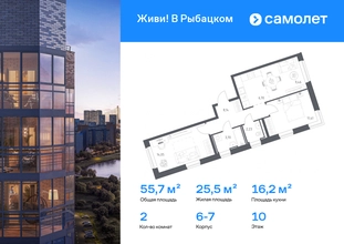 Предлагается 2-комнатная квартира комфорт-класса 55,69 кв.м в корпусе 6-7 на 10 этаже, в ЖК «Живи! В Рыбацком» Квартира без отделки. Доступность опции «отделка» и возможность комплектации мебелью и декором уточняйте у застройщика. Приобрести квартиру возможно по специальным акциям от застройщика, с текущими условиями акций можно ознакомиться в блоке «Акций». Цена динамическая и может отличаться, уточняйте актуальность у застройщика. Квартал «Живи! В Рыбацком» в Невском районе Санкт-Петербурга расположен рядом с рекой Славянкой и парком. Всего 20 минут пешей прогулки — и вы у метро «Рыбацкое». Автомобилисты будут добираться до КАДа за десять минут. В квартале работают два детских сада, школа и кабинет врача. На первых этажах зданий открыты магазины, кафе и салоны красоты. Во дворе — зеленые бульвары, воркаут-площадка, спортивный и игровой кластеры. Для машин — подземный паркинг. Кирпично-монолитные дома с каменной облицовкой — воплощение долговечности и тепла. Есть в квартале и камерный 30-й корпус, в нем восемь этажей, 70 квартир и приватный двор-парк. В сквозных парадных — безбарьерная среда, помещения для хранения колясок и велосипедов и система видеонаблюдения. #yan19-2r1813117#О застройщике