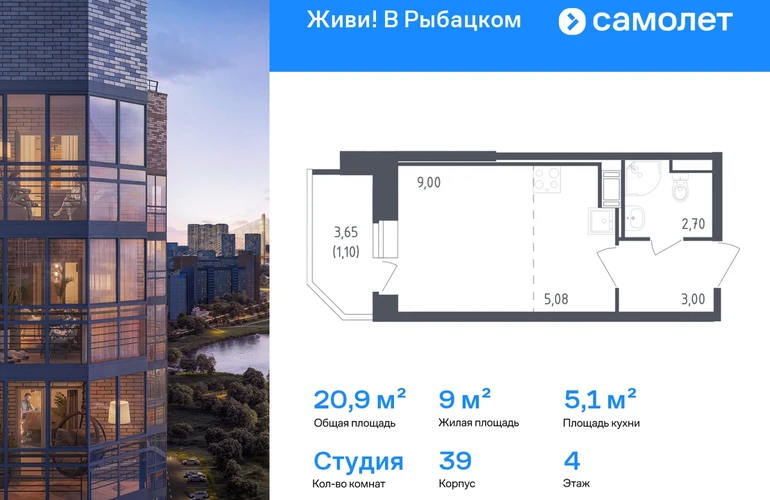 Предлагается квартира студия комфорт-класса 20,88 кв.м в корпусе 39 на 4 этаже, в ЖК «Живи! В Рыбацком» Квартира с чистовой отделкой. Доступность дополнительных опций уточняйте у застройщика. Приобрести квартиру возможно по специальным акциям от застройщика, с текущими условиями акций можно ознакомиться в блоке «Акций». Цена динамическая и может отличаться, уточняйте актуальность у застройщика. Квартал «Живи! В Рыбацком» в Невском районе Санкт-Петербурга расположен рядом с рекой Славянкой и парком. Всего 20 минут пешей прогулки — и вы у метро «Рыбацкое». Автомобилисты будут добираться до КАДа за десять минут. В квартале работают два детских сада, школа и кабинет врача. На первых этажах зданий открыты магазины, кафе и салоны красоты. Во дворе — зеленые бульвары, воркаут-площадка, спортивный и игровой кластеры. Для машин — подземный паркинг. Кирпично-монолитные дома с каменной облицовкой — воплощение долговечности и тепла. Есть в квартале и камерный 30-й корпус, в нем восемь этажей, 70 квартир и приватный двор-парк. В сквозных парадных — безбарьерная среда, помещения для хранения колясок и велосипедов и система видеонаблюдения. #yan19-2r1814015#О застройщике